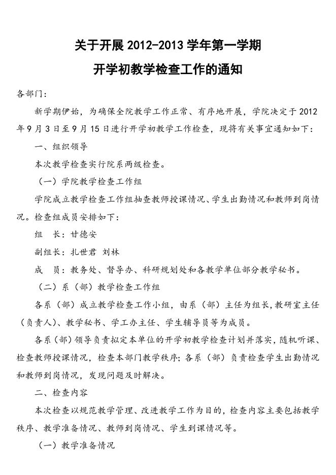 “关于开展2012-2013学年第一学期开学初教学检查工作的通知”下载.doc
