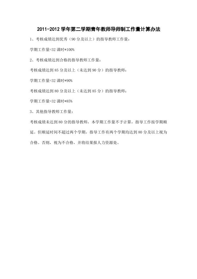 2011―2012学年第二学期青年教师导师制导师工作量计算办法.doc