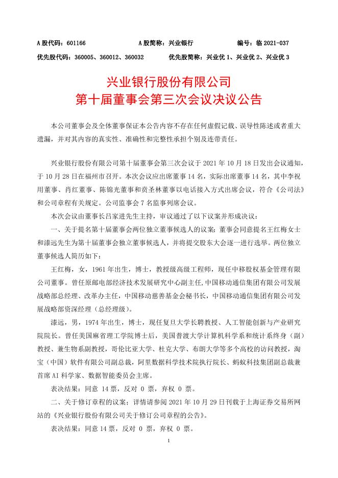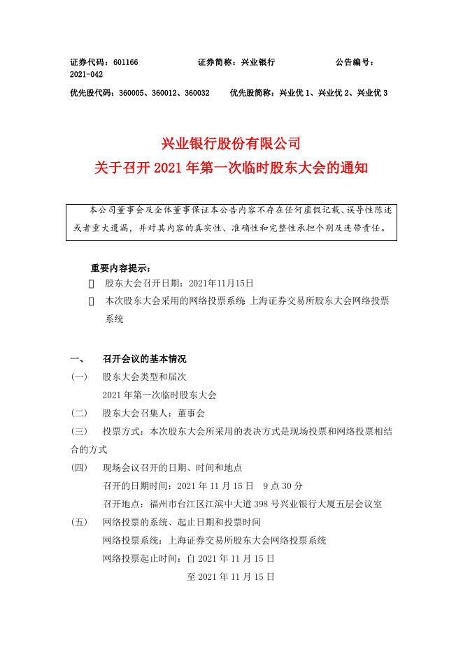 兴业银行关于召开2021年第一次临时股东大会的通知.docx