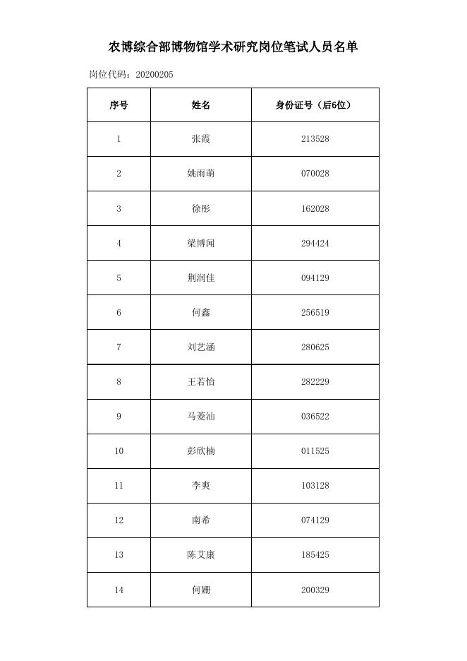 20200206全国农业展览馆社教部笔试人员名单.xlsx