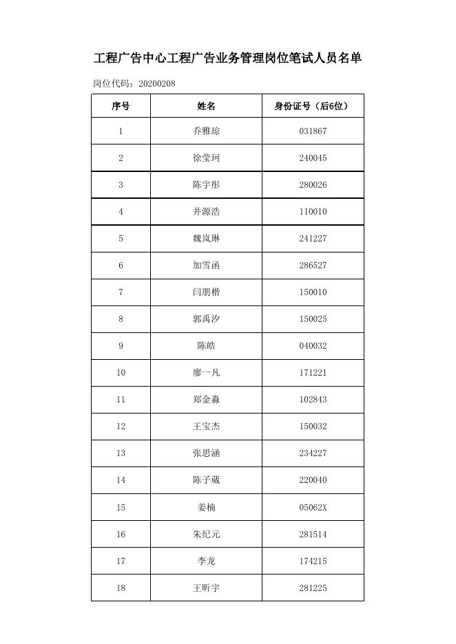 20200208全国农业展览馆工程广告中心笔试人员名单.xlsx