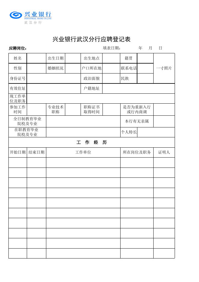 兴业银行股份有限公司漳州分行应聘登记表.xls