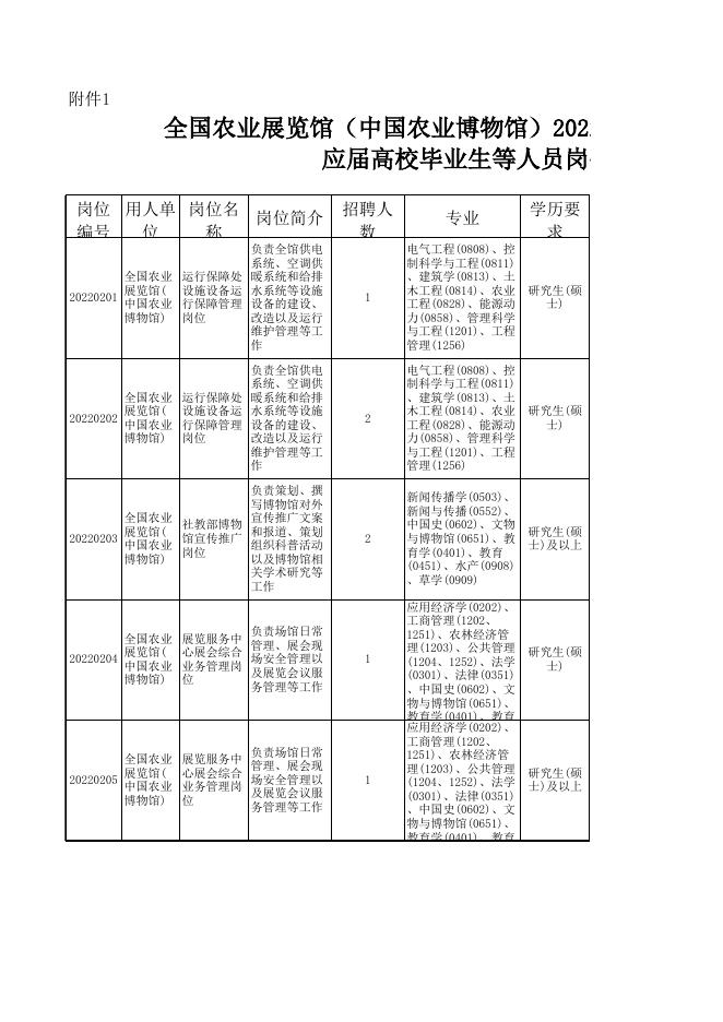全国农业展览馆(中国农业博物馆)2022年 第一批公开招聘应届高校毕业生等人员补充公告 - 全国农业展览馆(中国农业博物馆) - 全国农业展览馆.xls