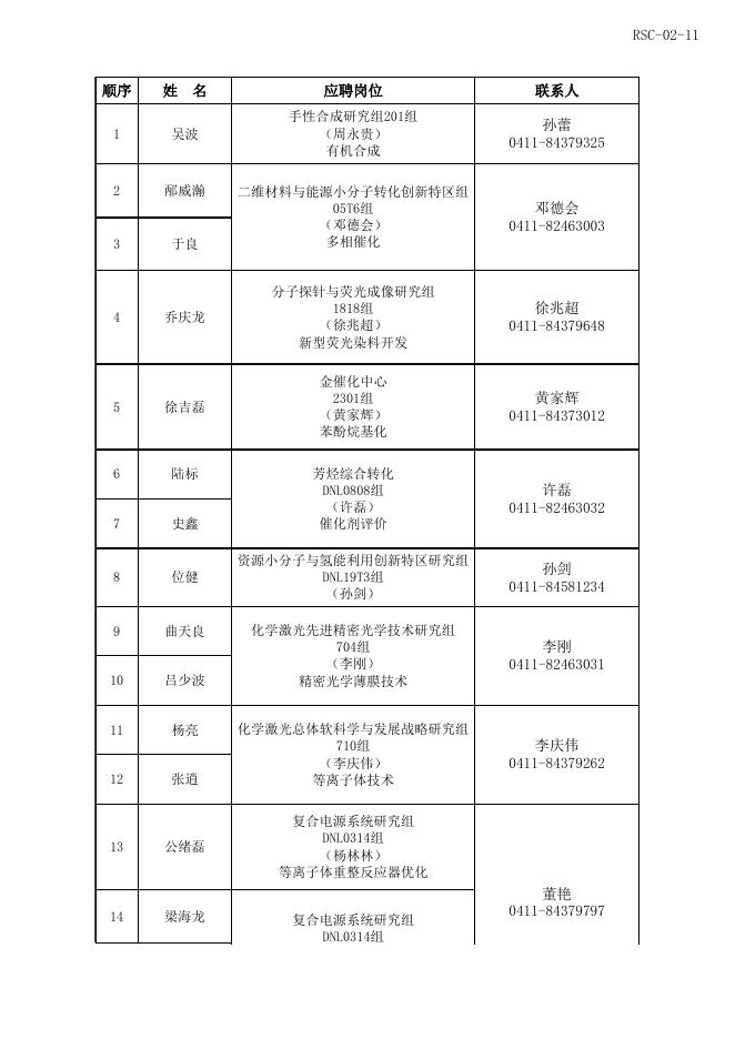 《大连化物所2020年人员招聘计划表》.xls