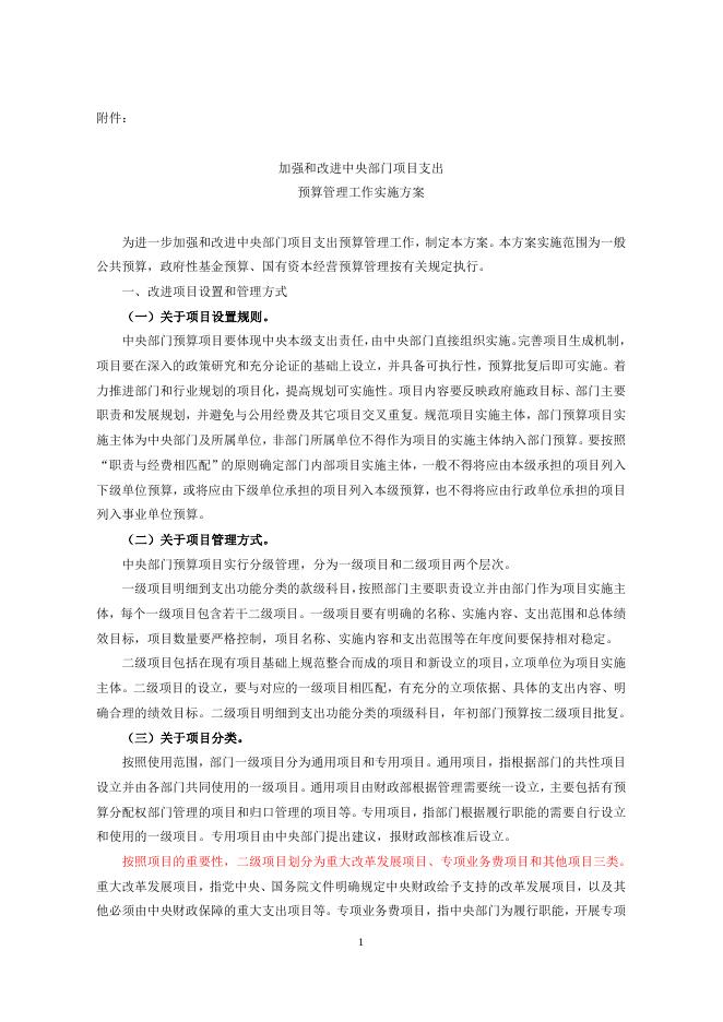 关于加强和改进中央部门项目支出预算管理的通知.doc