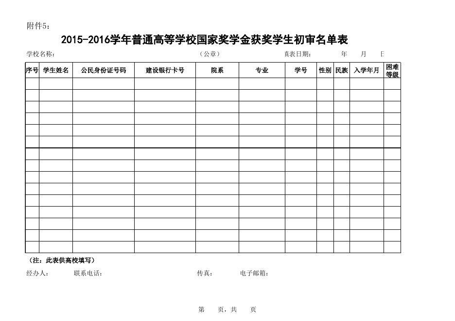 点击下载附件:附件5:2015-2016学年普通高等学校国家奖学金获奖学生初审名单表.xls