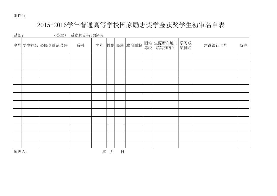 点击下载附件:附件6:2015-2016学年普通高等学校国家励志奖学金获奖学生初审名单表.xls