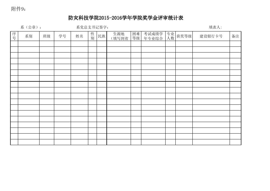 点击下载附件:附件9:防灾科技学院2015-2016学年学院奖学金评审统计表.xls