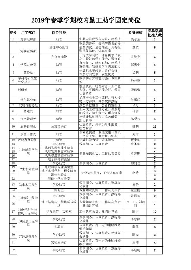 点击下载附件:附件1:2019年春季学期校内勤工助学固定岗位.xls