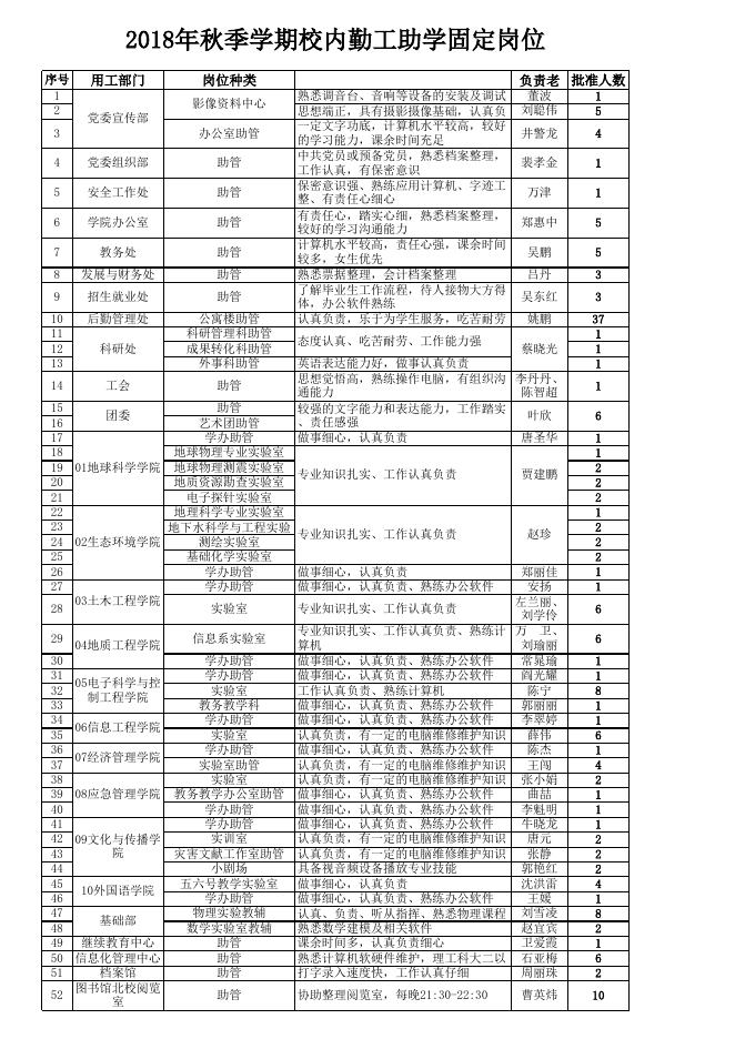 点击下载附件:附件1:2018年秋季学期校内勤工助学固定岗位.xls