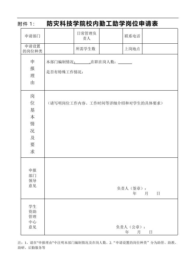 点击下载附件:附件1:防灾科技学院勤工助学固定岗位申请表.doc