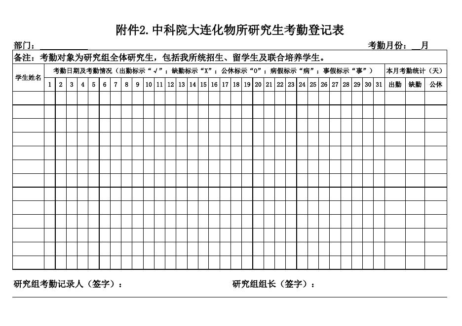 附件2 中科院大连化物所研究生考勤登记表.xlsx