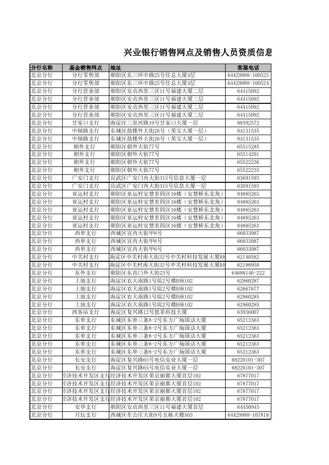 兴业银行销售网点及销售人员资质信息一览表.xls