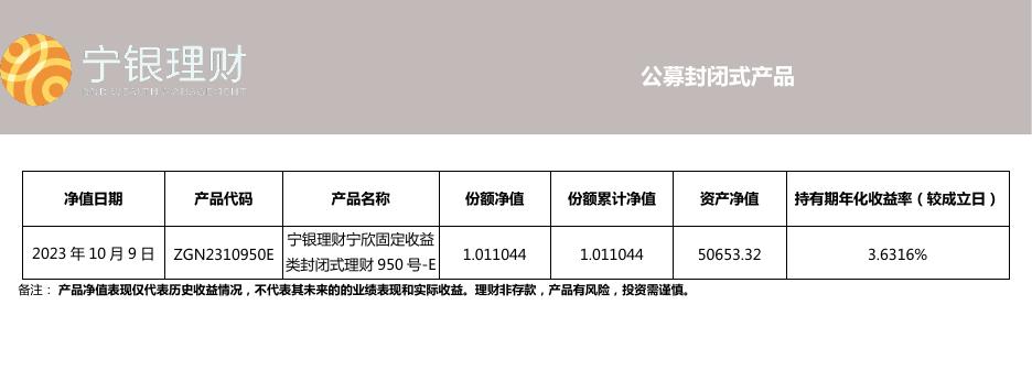 宁银理财宁欣固定收益类封闭式理财950号-E_净值披露_20231010.pdf