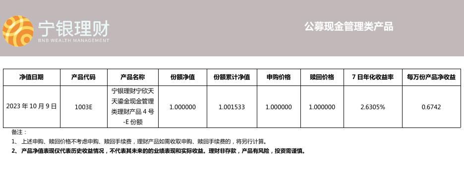宁银理财宁欣天天鎏金现金管理类理财产品4号-E份额_净值披露_20231010.pdf
