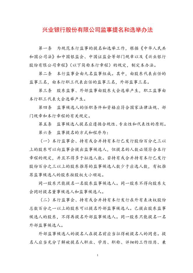 兴业银行股份有限公司监事提名和选举办法.doc