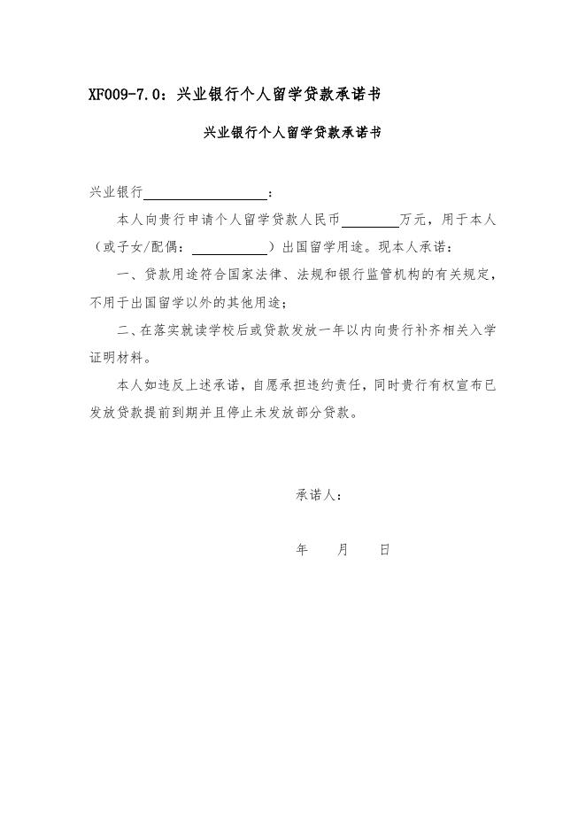 兴业银行个人留学贷款承诺书(XF009-7.0).pdf