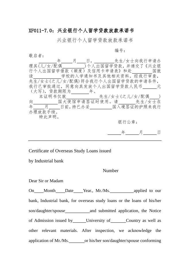 兴业银行个人留学贷款放款承诺书(XF011-7.0).pdf