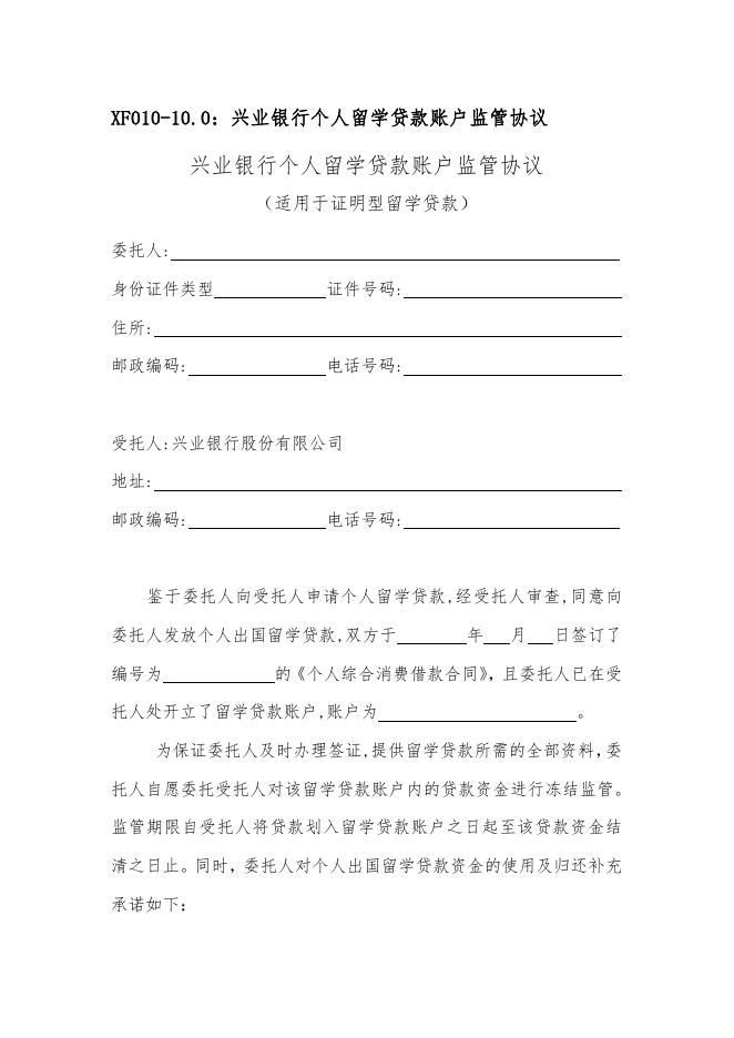 兴业银行个人留学贷款账户监管协议(XF010-10.0).pdf