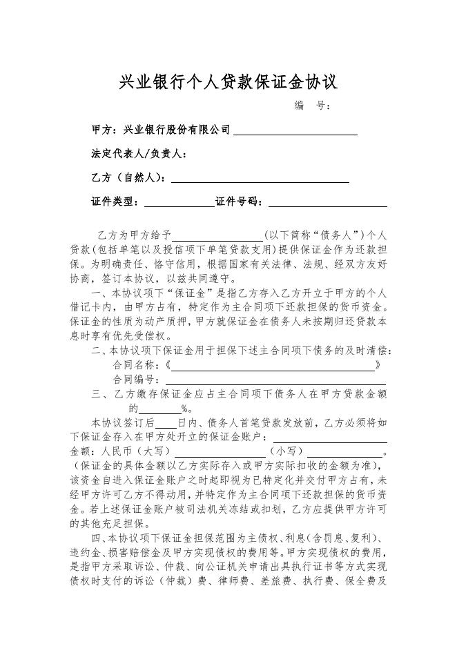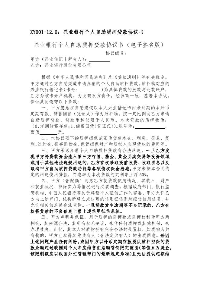 兴业银行个人自助质押贷款协议书(ZY001-12.0).pdf