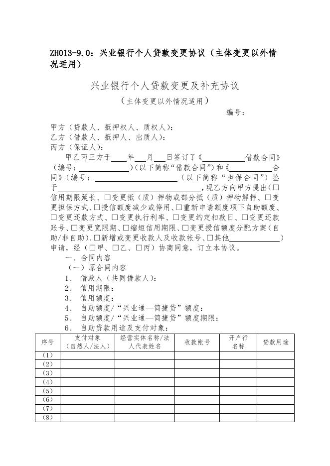 兴业银行个人贷款变更协议(主体变更以外情况适用)(ZH013-9.0).pdf