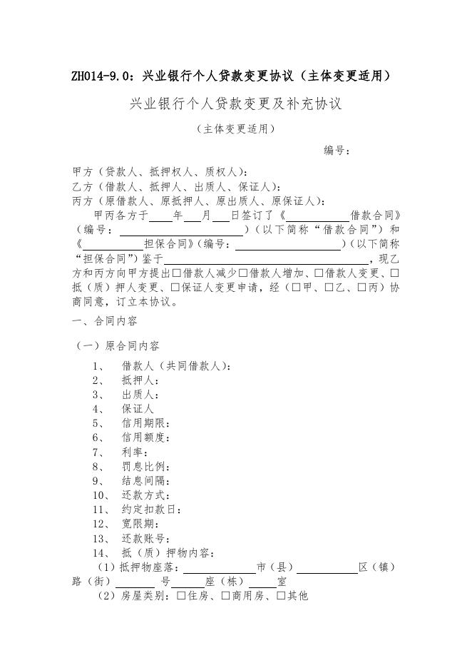 兴业银行个人贷款变更协议(主体变更适用)(ZH014-9.0).pdf