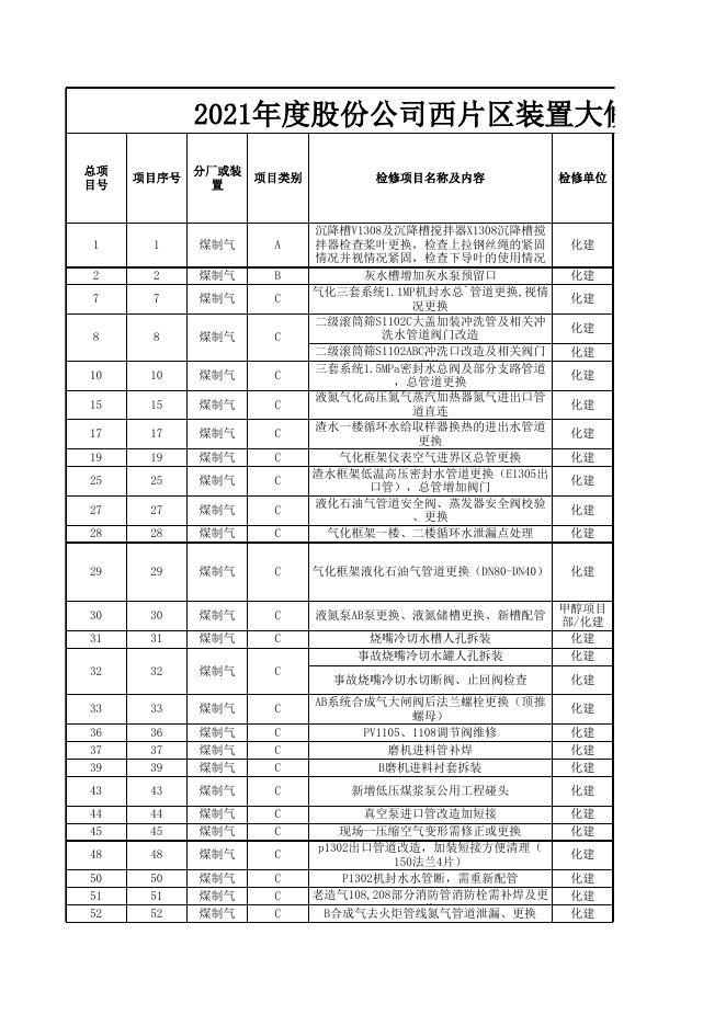 2021年股份公司大修项目表10.12(气化标段安装招标).xls