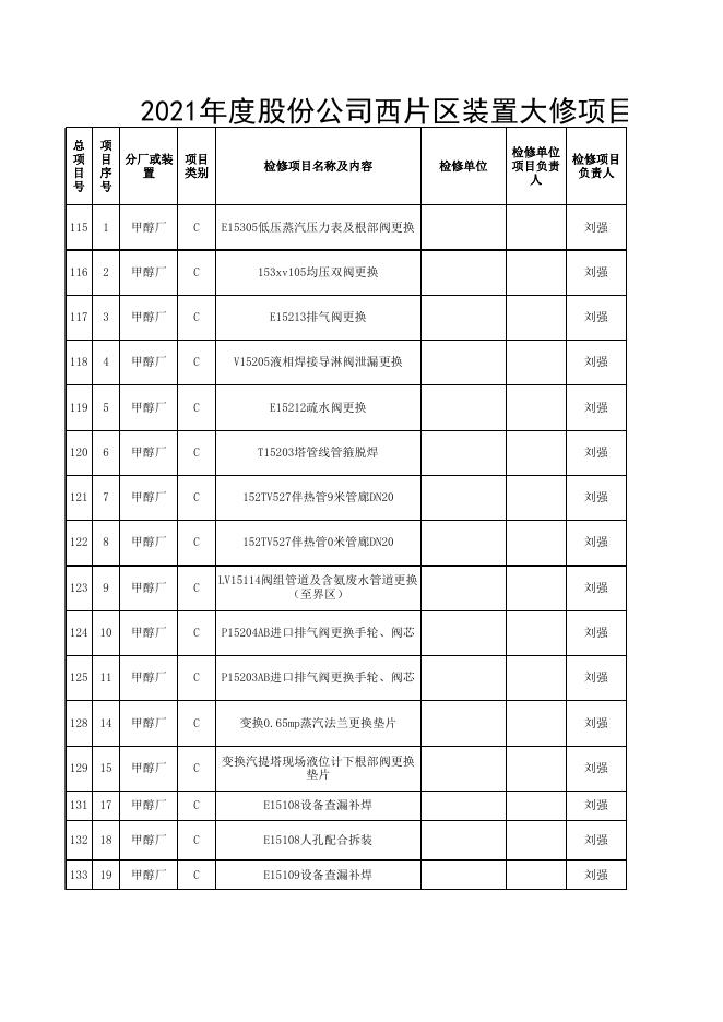 2021年股份公司大修项目表10.12(甲醇净化标段安装招标).xls