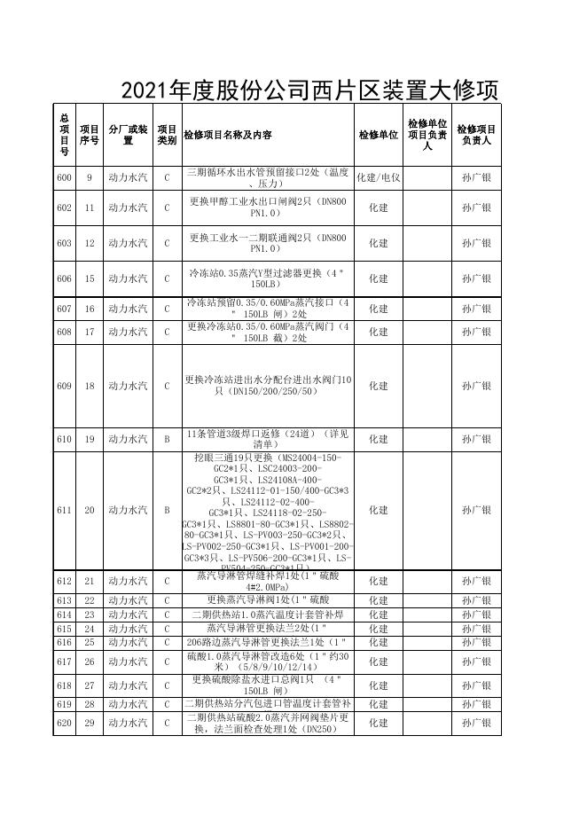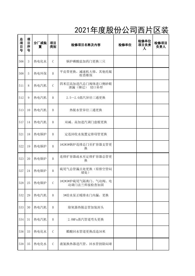 2021年股份公司大修项目表10.12(热电标段安装招标).xls