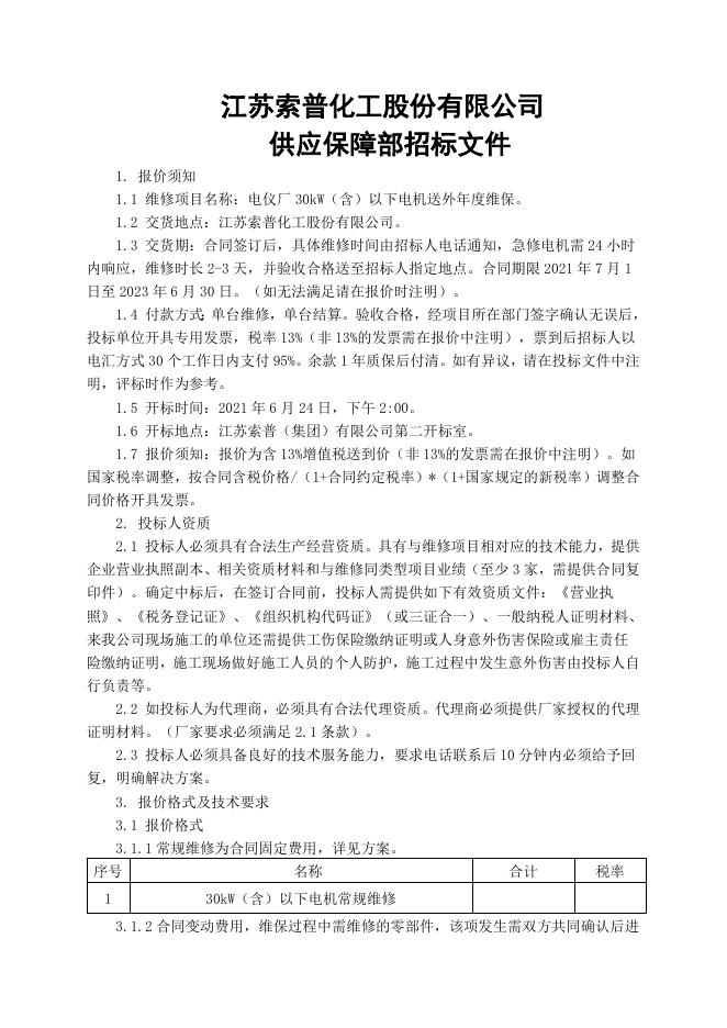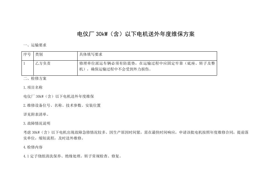 电仪厂30kW(含)以下电机送外年度维保维修招标文件2021.6.24.doc