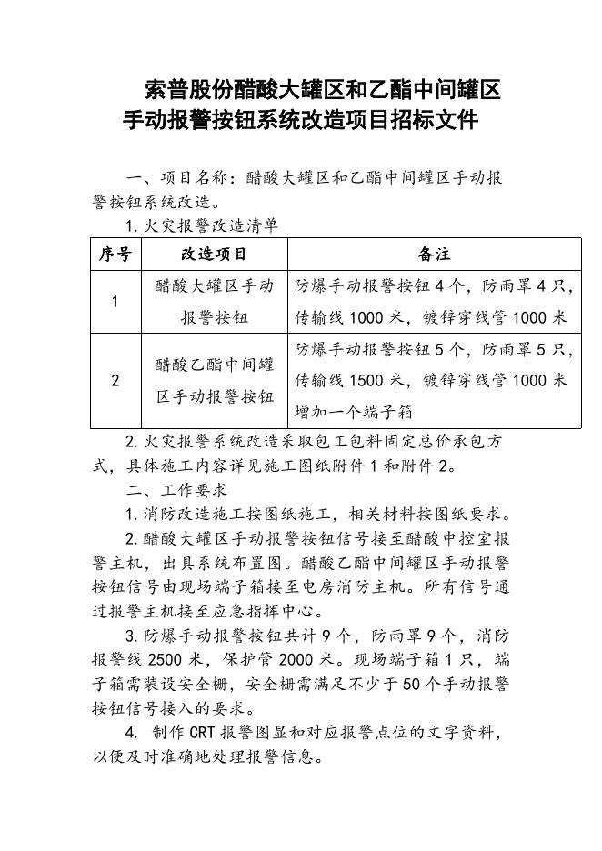 索普股份醋酸大罐区和乙酯中间罐区手动报警按钮系统改造项目招标文件.doc