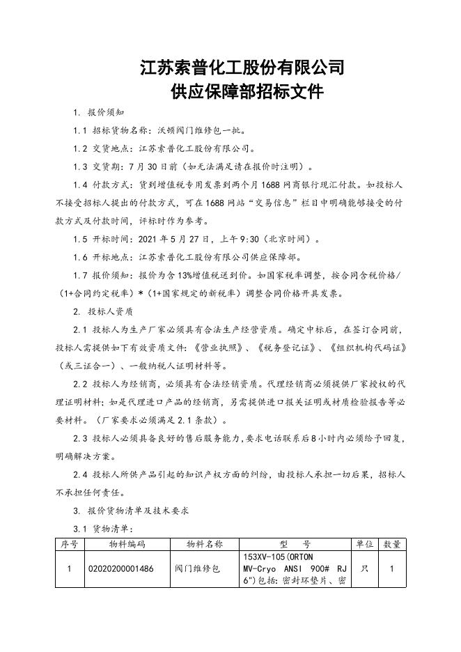 沃顿阀门维修包一批招标文件2021.5.14.doc