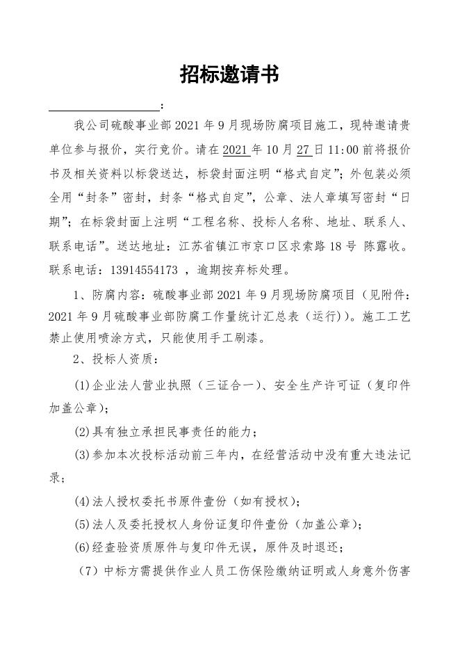 修改:招标邀请书(防腐).doc