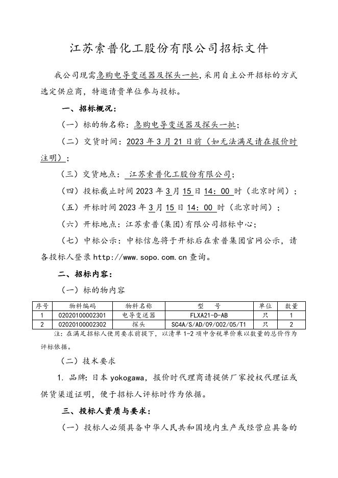 急购电导变送器及探头一批招标文件-2023.3.13.doc