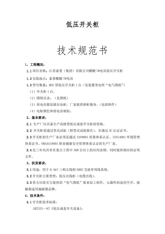 附件3:醋酸7#变低压配电柜技术要求.docx