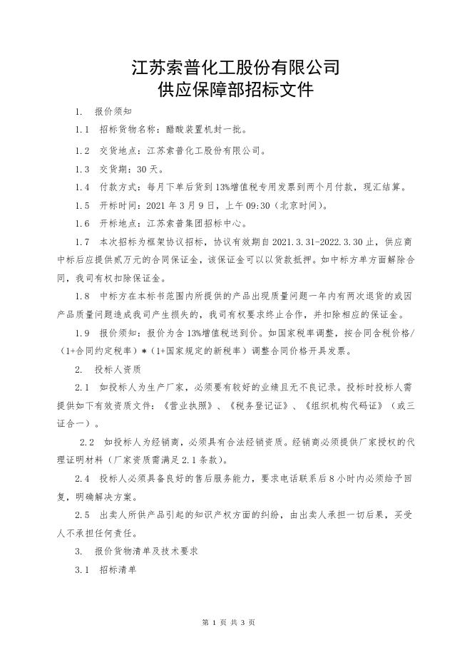 招标文件-醋酸装置机封2021-2022年度框架协议.doc
