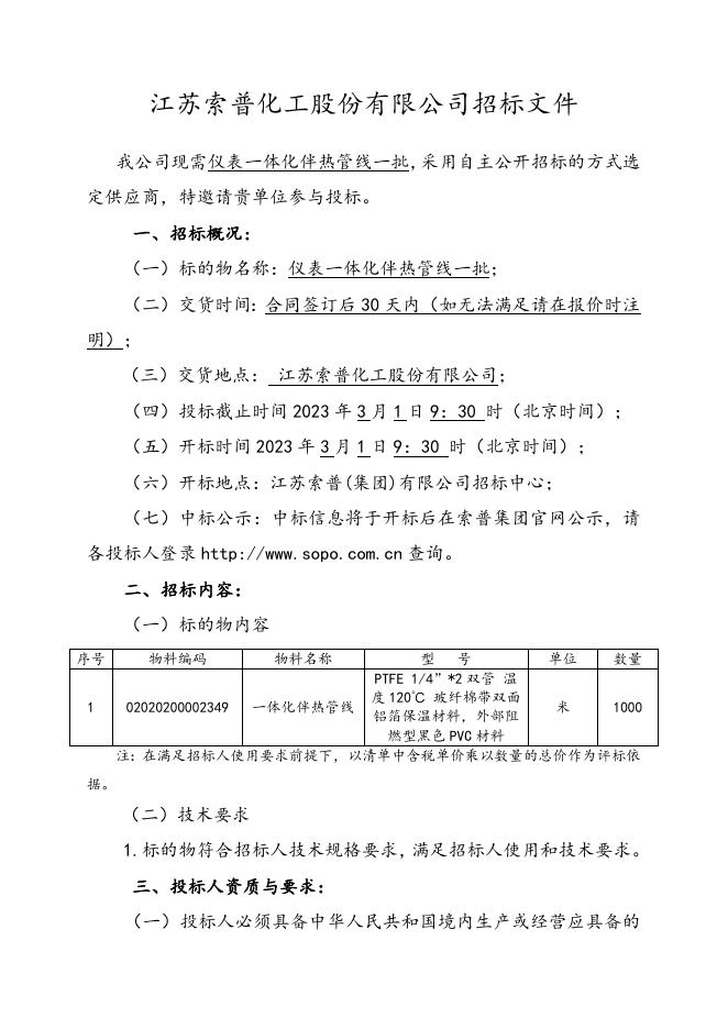 仪表一体化伴热管线一批招标文件-2023.2.15.doc