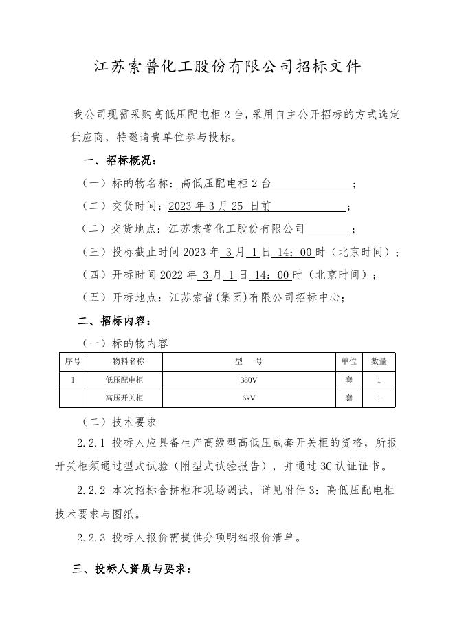高低压配电柜招标文件.doc