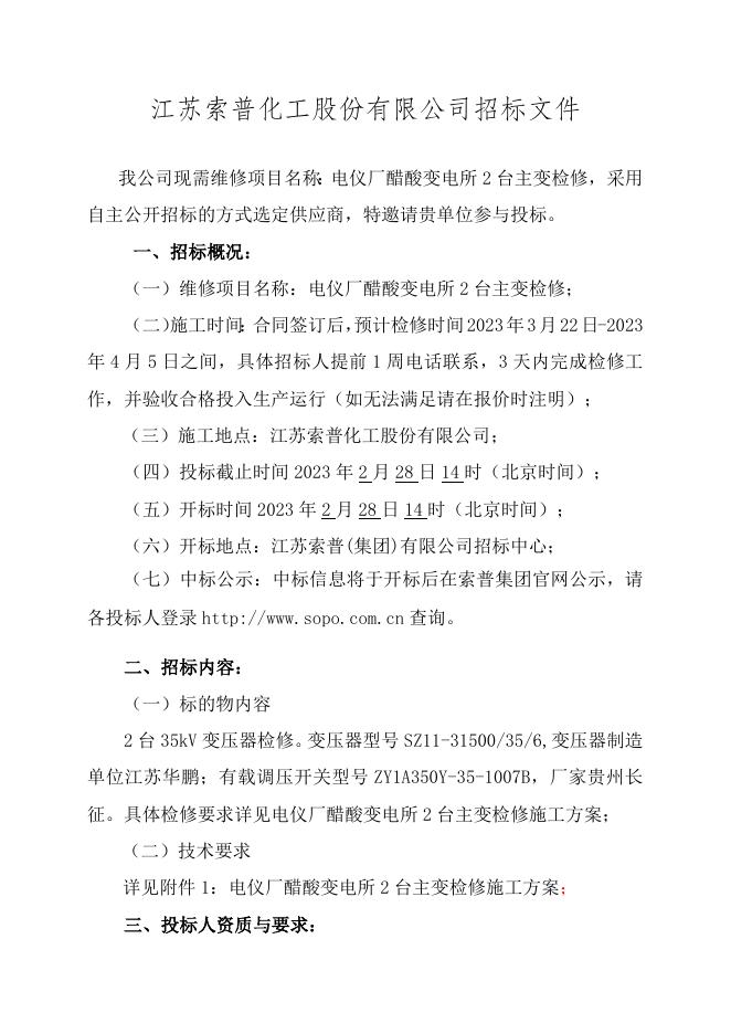 电仪厂醋酸变电所2台主变检修自主公开招标招标文件-股份2023.2.28.doc