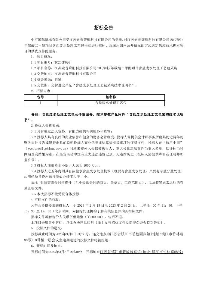 含盐废水处理工艺包公告.doc