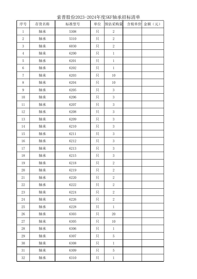 附件3:索普股份2023-2024年度SKF轴承招标明细.xls