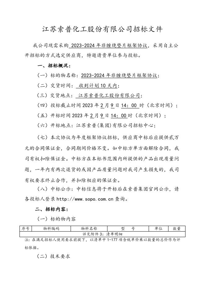 2023-2024年非缠绕垫片框架协议招标文件-2023.1.19.doc