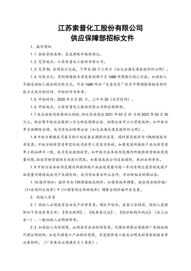 直流屏配件框架协议招标文件.doc