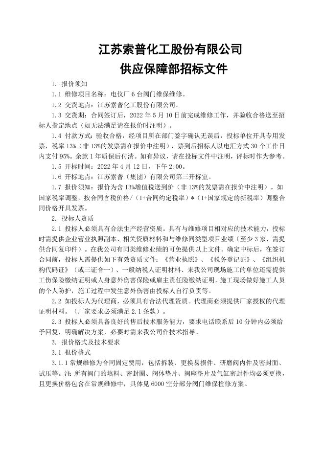 电仪厂6台阀门维保维修招标文件2022.4.12.doc