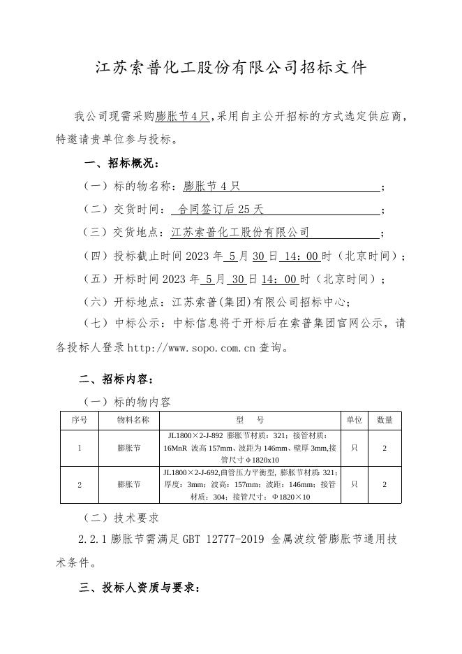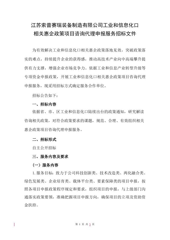 江苏索普赛瑞装备制造有限公司工信口招标文件(20220328)(2).doc