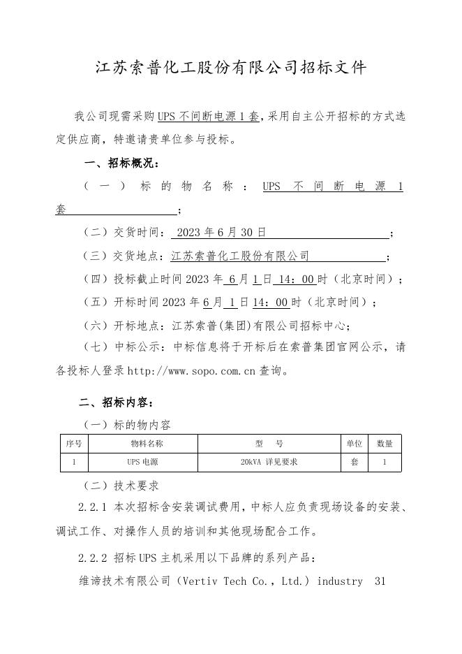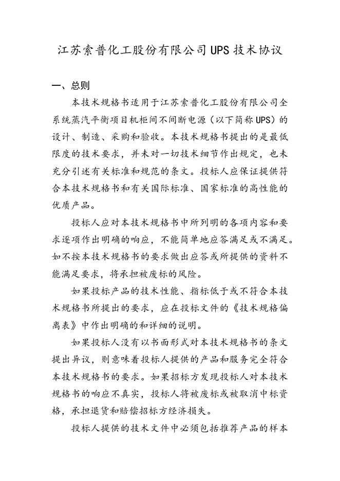附件3:UPS不间断电源技术要求文件20KVA.docx