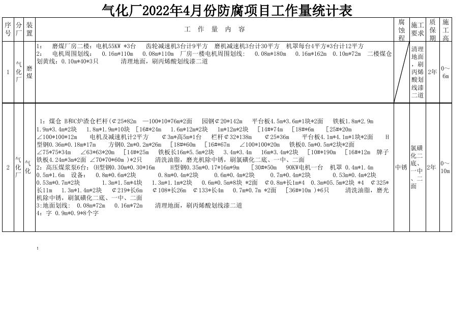 气化厂2022年4月份防腐工作量统计.xlsx