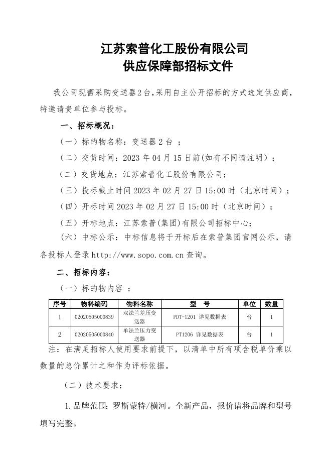招标文件-变送器2台.doc