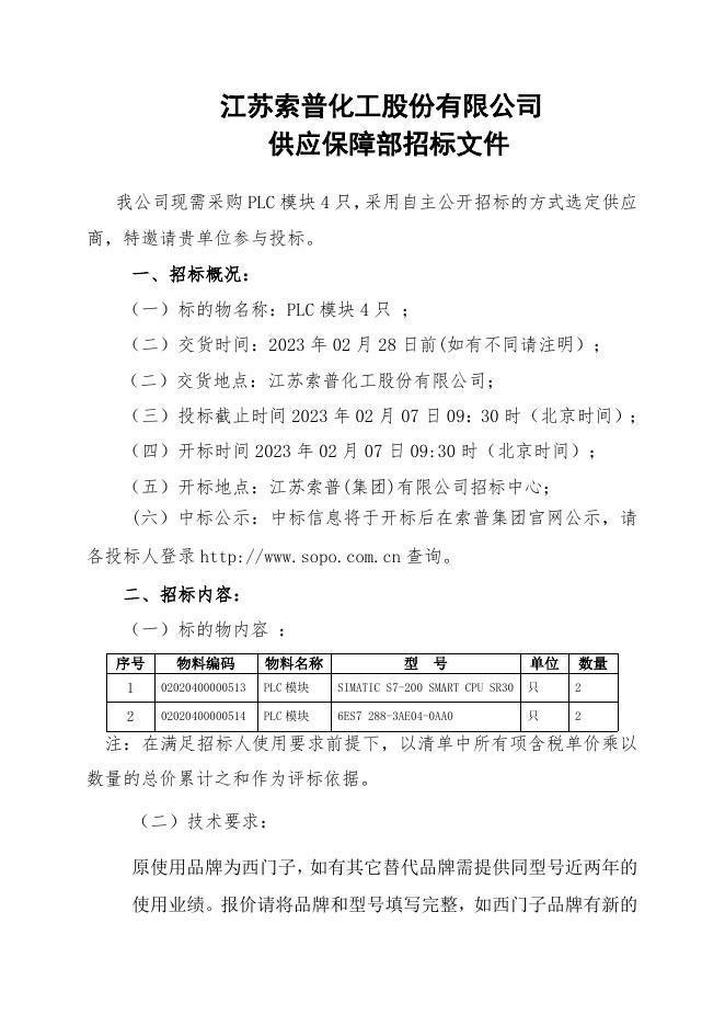 招标文件-PLC模块4只.doc