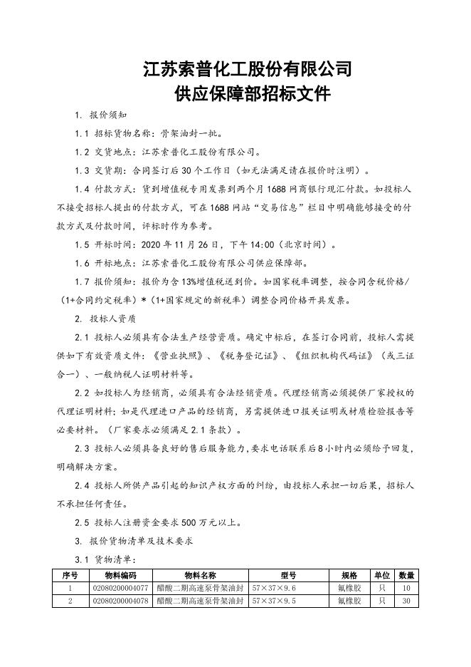 骨架油封一批招标文件.doc